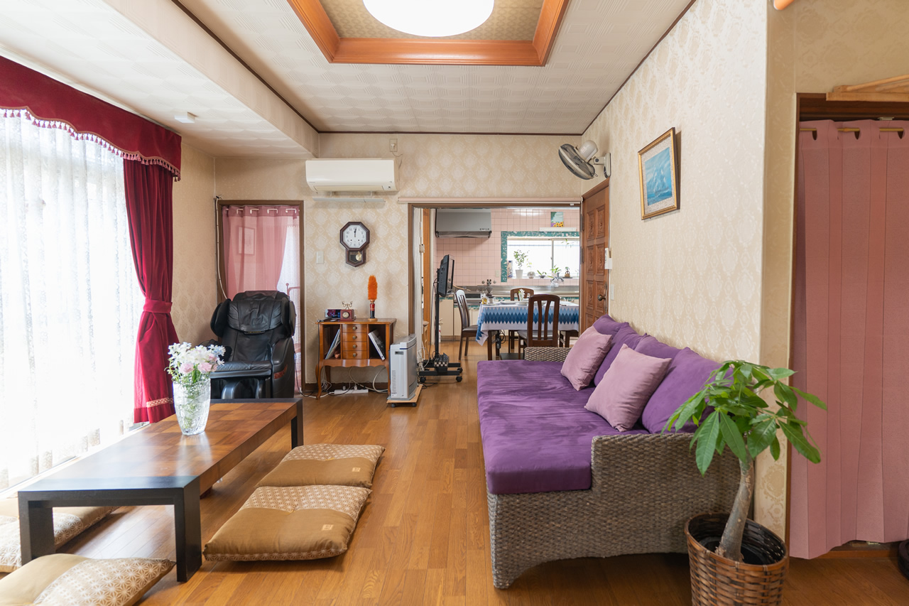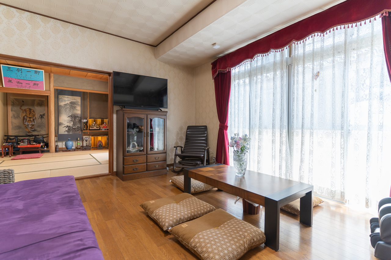 A spacious living room with many Showa retro accessories.